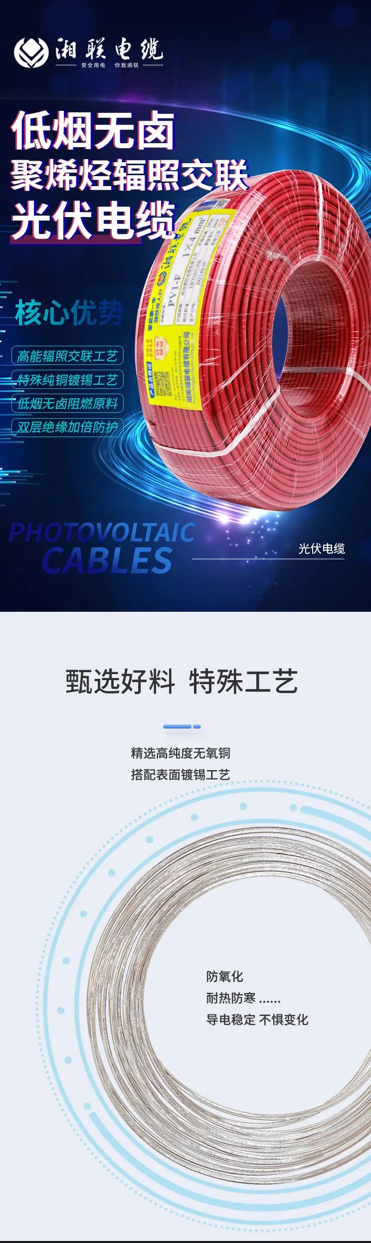 綠色環保,安全耐用 | 湘聯電纜低煙無鹵聚烯徑輻照交聯光伏電纜!